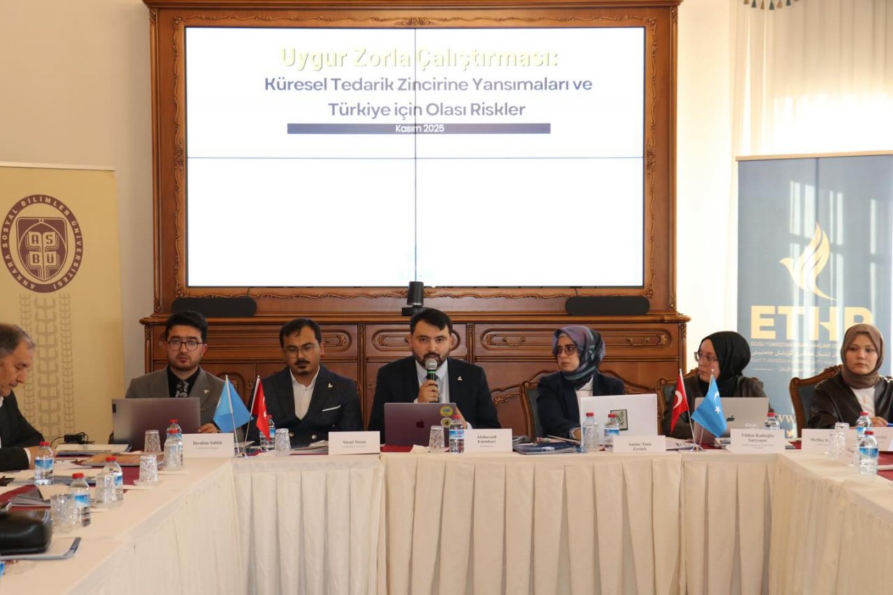 ئەنقەرە ئىجتىمائىي پەنلەر ئۇنىۋېرسىتېتىدا «ئۇيغۇرلارنى مەجبۇرىي ئەمگەككە سېلىش: يەر شارى تەمىنات زەنجىرىگە تەسىرى ۋە تۈركىيە ئۈچۈن يۈز بېرىشى مۇمكىن بولغان خەتەرلەر» تېمىلىق يىغىن ئۆتكۈزۈلدى.