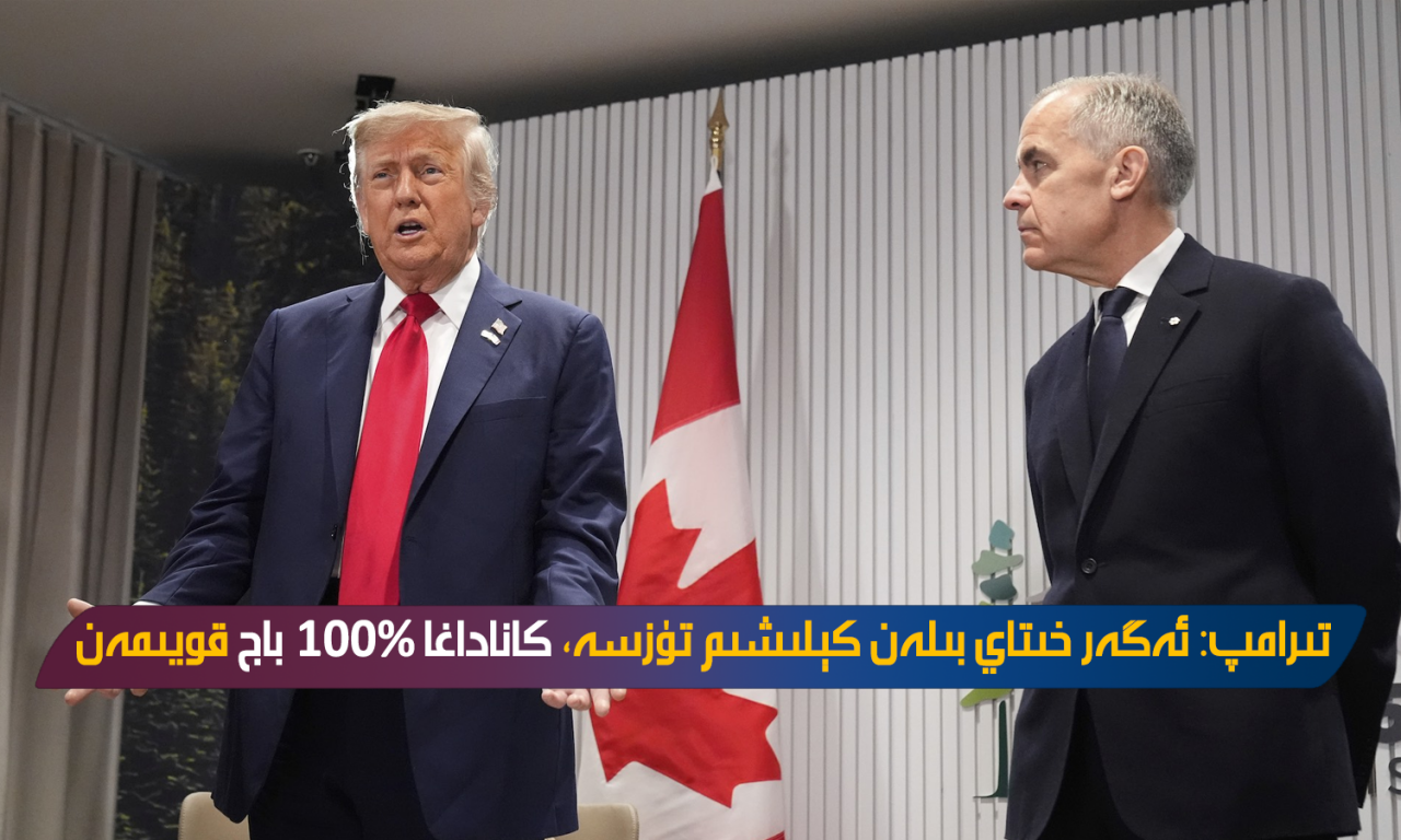 ئامېرىكا پىرېزىدېنتى دونالد تىرامپ يېقىندا خىتاي بىلەن دەسلەپكى قەدەمدە كېلىشىم ھاسىل قىلغان كانادا ھۆكۈمىتىگە تەھدىت سېلىپ، ئەگەر كانادا خىتاي بىلەن رەسمىي كېلىشىم تۈزسە، كاناداغا %100 تاموژنا بېجى قويىدىغانلىقىنى تەكىتلىدى.