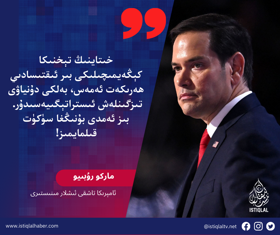 ئامېرىكا تاشقى ئىشلار مىنىستىرى ماركو رۇبىيو مىيۇنخېن بىخەتەرلىك يىغىنىدا: «خىتاينىڭ تېخنىكا كېڭەيمىچىلىكى بىر ئىقتىسادىي ھەرىكەت ئەمەس، بەلكى دۇنياۋى تىزگىنلەش ئىستراتېگىيەسىدۇر. بىز ئەمدى بۇنىڭغا سۈكۈت قىلمايمىز» دېدى. بۇ خەۋەر 461 قېتىم كۆرۈلدى 17/02/2026 11:04:00 ئىنكاسلار ئىنكاس يزىڭ 0 بۇ خەۋەرگە ئىنكاس يوق