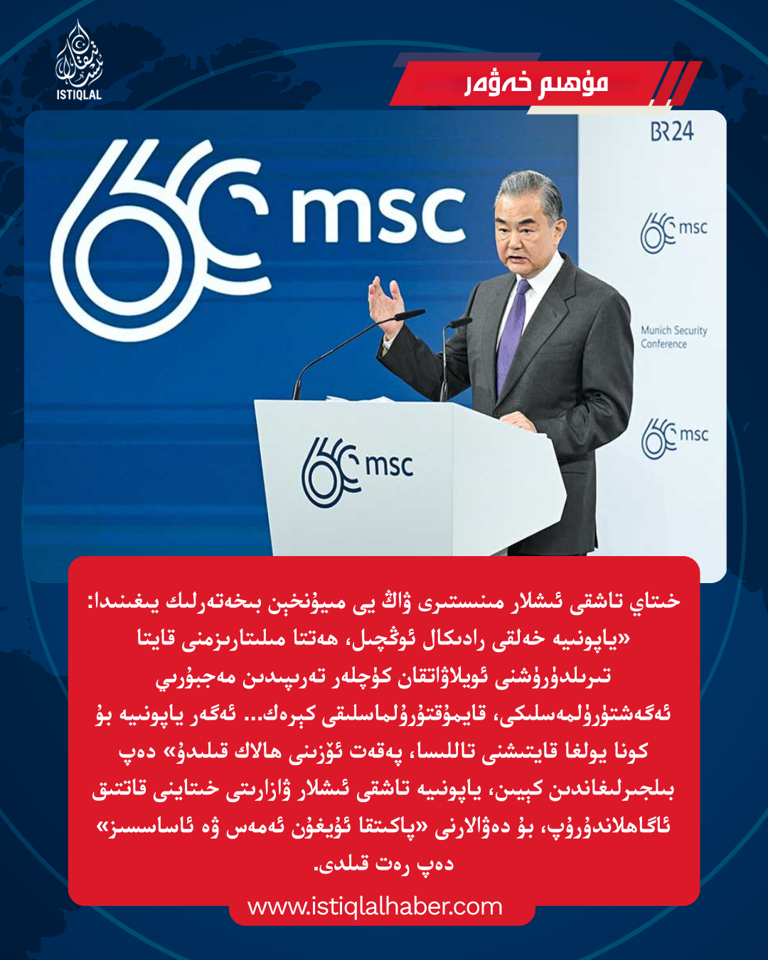 خىتاي تاشقى ئىشلار مىنىستىرى ۋاڭ يى مىيۇنخېن بىخەتەرلىك يىغىنىدا: «ياپونىيە خەلقى رادىكال ئوڭچىل، ھەتتا مىلىتارىزمنى قايتا تىرىلدۈرۈشنى ئويلاۋاتقان كۈچلەر تەرىپىدىن مەجبۇرىي ئەگەشتۈرۈلمەسلىكى، قايمۇقتۇرۇلماسلىقى كېرەك... ئەگەر ياپونىيە بۇ كونا يولغا قايتىشنى تاللىسا، پەقەت ئۆزىنى ھالاك قىلىدۇ» دەپ بىلجىرلىغاندىن كېيىن، ياپونىيە تاشقى ئىشلار ۋازارىتى خىتاينى قاتتىق ئاگاھلاندۇرۇپ، بۇ دەۋالارنى «پاكىتقا ئۇيغۇن ئەمەس ۋە ئاساسسىز» دەپ رەت قىلدى.