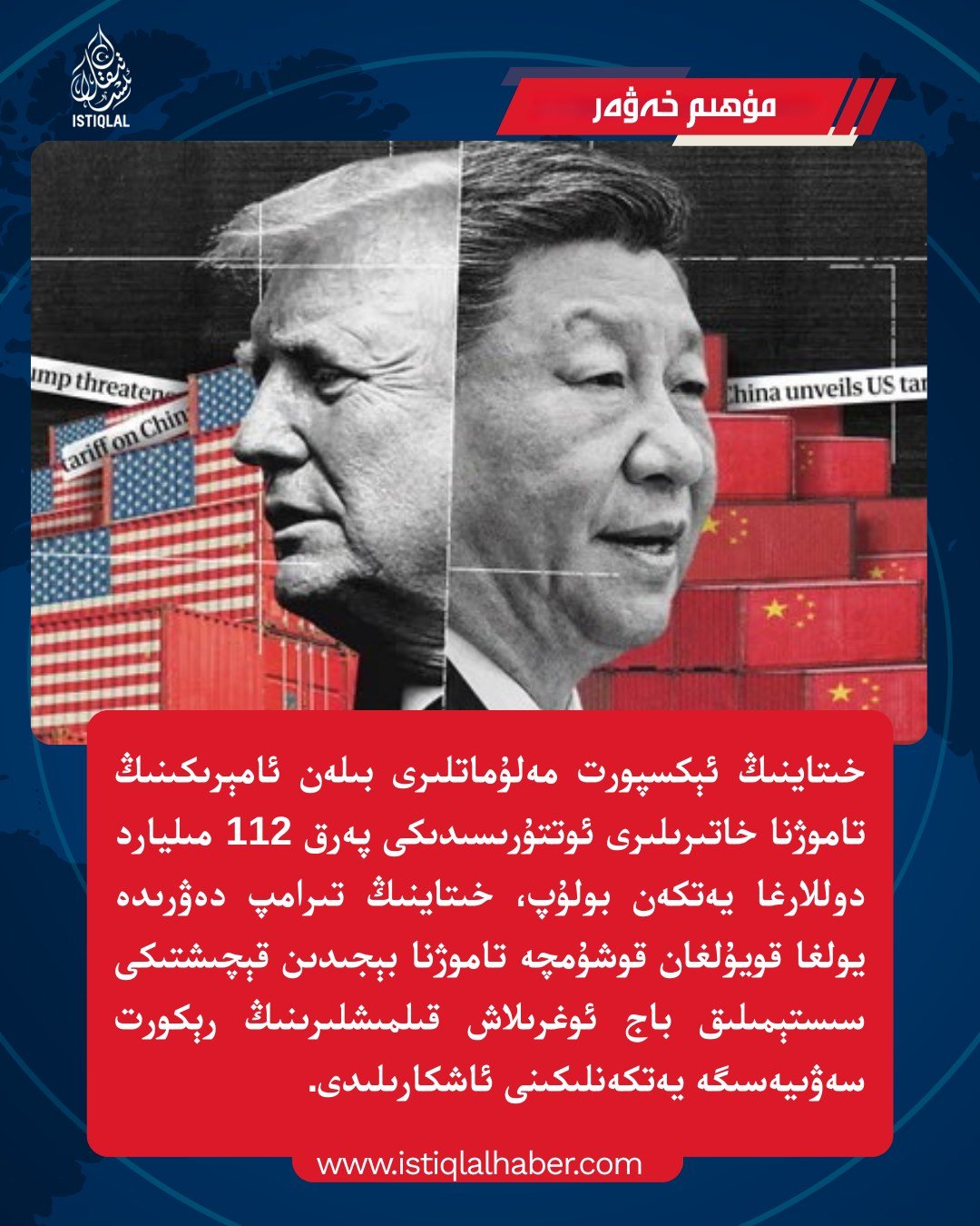 خىتاينىڭ ئېكسپورت مەلۇماتلىرى بىلەن ئامېرىكىنىڭ تاموژنا خاتىرىلىرى ئوتتۇرىسىدىكى پەرق 112 مىليارد دوللارغا يەتكەن بولۇپ، خىتاينىڭ تىرامپ دەۋرىدە يولغا قويۇلغان قوشۇمچە تاموژنا بېجىدىن قېچىشتىكى سىستېمىلىق باج ئوغرىلاش قىلمىشلىرىنىڭ رېكورت سەۋىيەسىگە يەتكەنلىكىنى ئاشكارىلىدى.