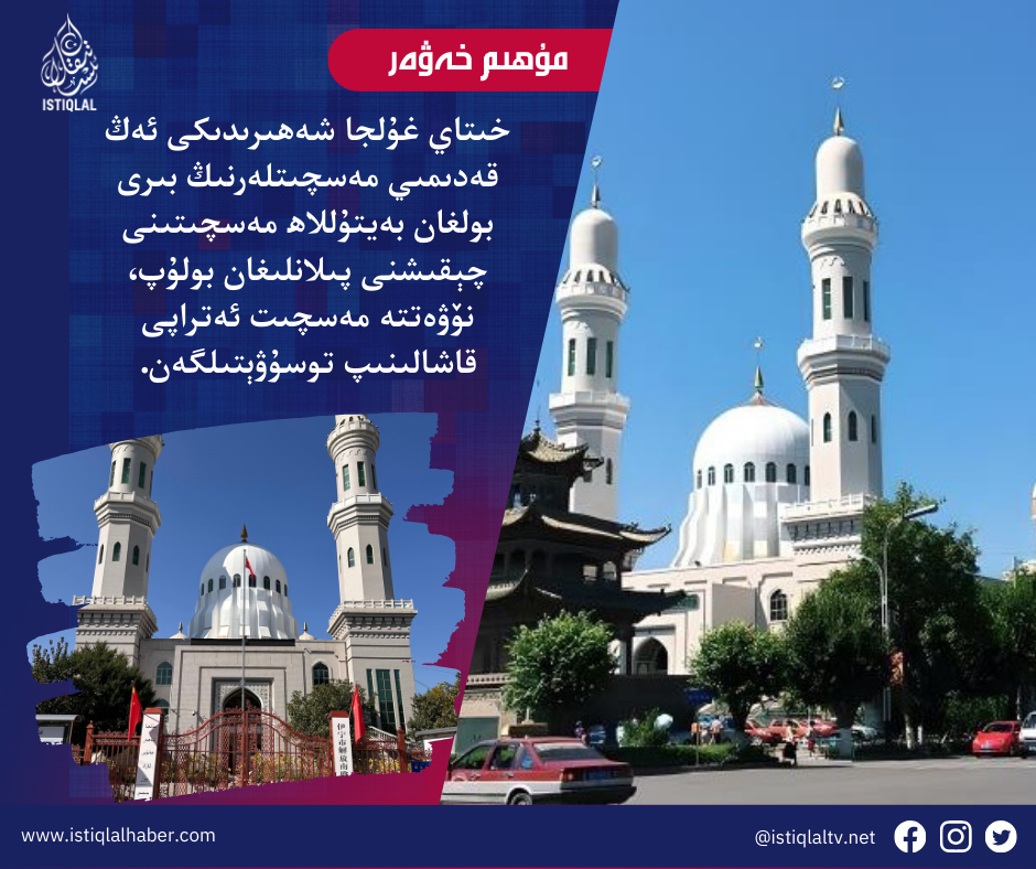 خىتاي غۇلجا شەھىرىدىكى ئەڭ قەدىمىي مەسچىتلەرنىڭ بىرى بولغان بەيتۇللاھ مەسچىتىنى چېقىشنى پىلانلىغان بولۇپ، نۆۋەتتە مەسچىت ئەتراپى قاشالىنىپ توسۇۋېتىلگەن. بۇ خەۋەر 54 قېتىم كۆرۈلدى 03/03/2026 11:45:00 ئىنكاسلار ئىنكاس يزىڭ 0 بۇ خەۋەرگە ئىنكاس يوق