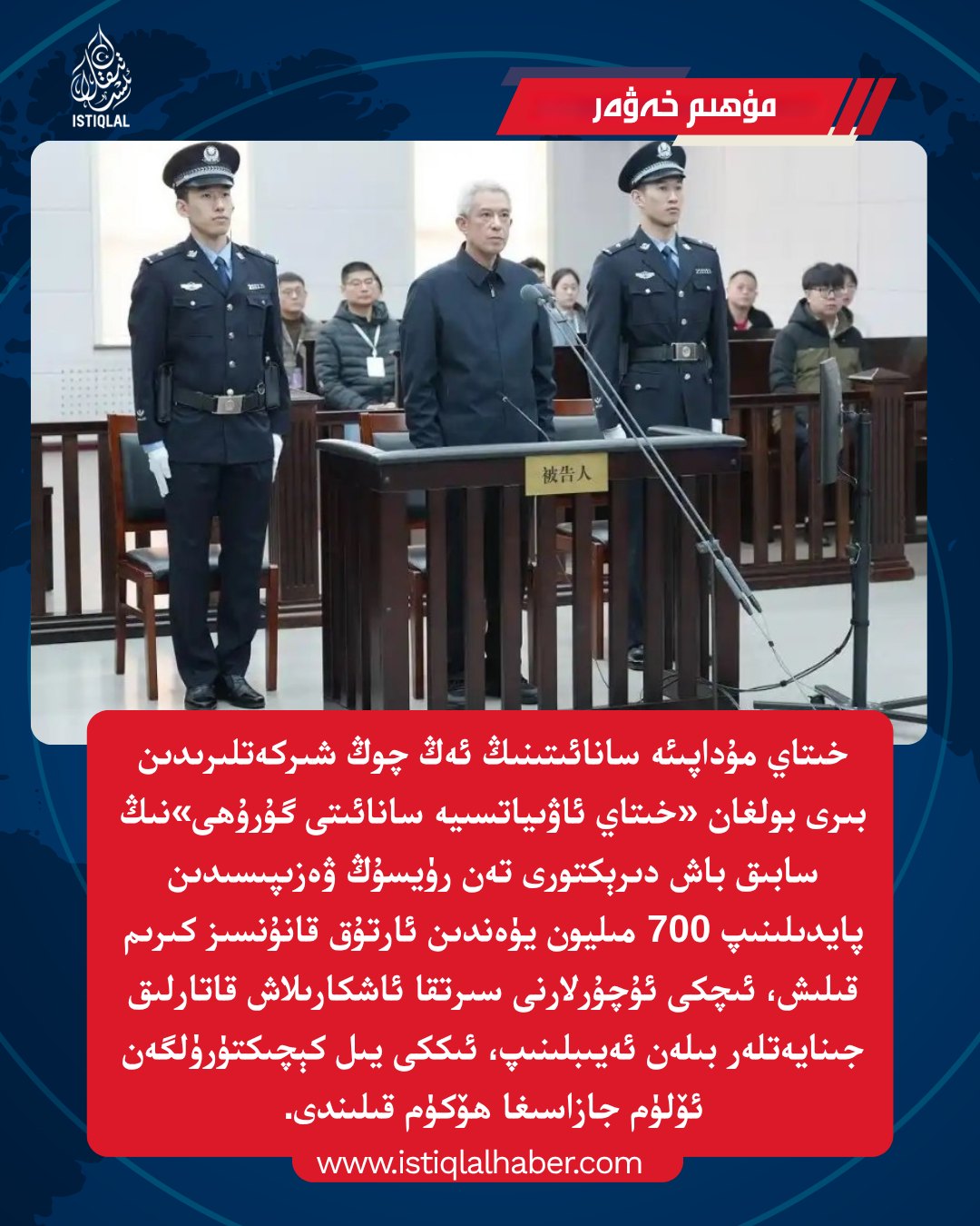 خىتاي مۇداپىئە سانائىتىنىڭ ئەڭ چوڭ شىركەتلىرىدىن بىرى بولغان «خىتاي ئاۋىياتسىيە سانائىتى گۇرۇھى»نىڭ سابىق باش دىرېكتورى تەن رۈيسۇڭ ۋەزىپىسىدىن پايدىلىنىپ 700 مىليون يۈەندىن ئارتۇق قانۇنسىز كىرىم قىلىش، ئىچكى ئۇچۇرلارنى سىرتقا ئاشكارىلاش قاتارلىق جىنايەتلەر بىلەن ئەيىبلىنىپ، ئىككى يىل كېچىكتۈرۈلگەن ئۆلۈم جازاسىغا ھۆكۈم قىلىندى.