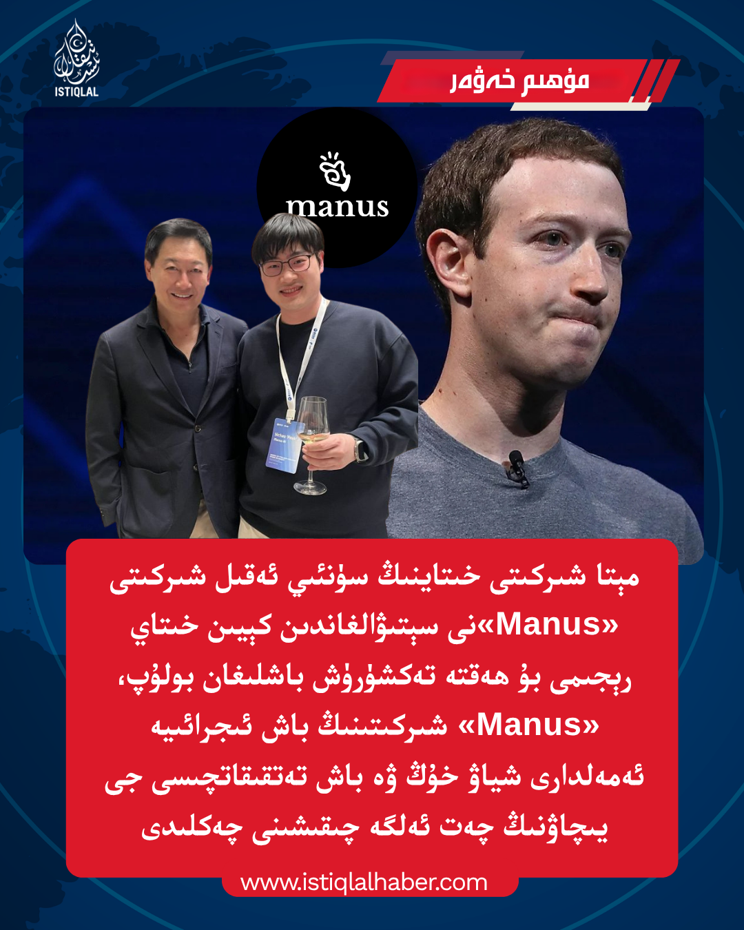 مېتا شىركىتى خىتاينىڭ سۈنئىي ئەقىل شىركىتى «Manus»نى سېتىۋالغاندىن كېيىن خىتاي رېجىمى بۇ ھەقتە تەكشۈرۈش باشلىغان بولۇپ، «Manus» شىركىتىنىڭ باش ئىجرائىيە ئەمەلدارى شياۋ خۇڭ ۋە باش تەتقىقاتچىسى جى يىچاۋنىڭ چەت ئەلگە چىقىشىنى چەكلىدى. بۇ خەۋەر 41 قېتىم كۆرۈلدى 27/03/2026 16:14:00 ئىنكاسلار ئىنكاس يزىڭ 0 بۇ خەۋەرگە ئىنكاس يوق