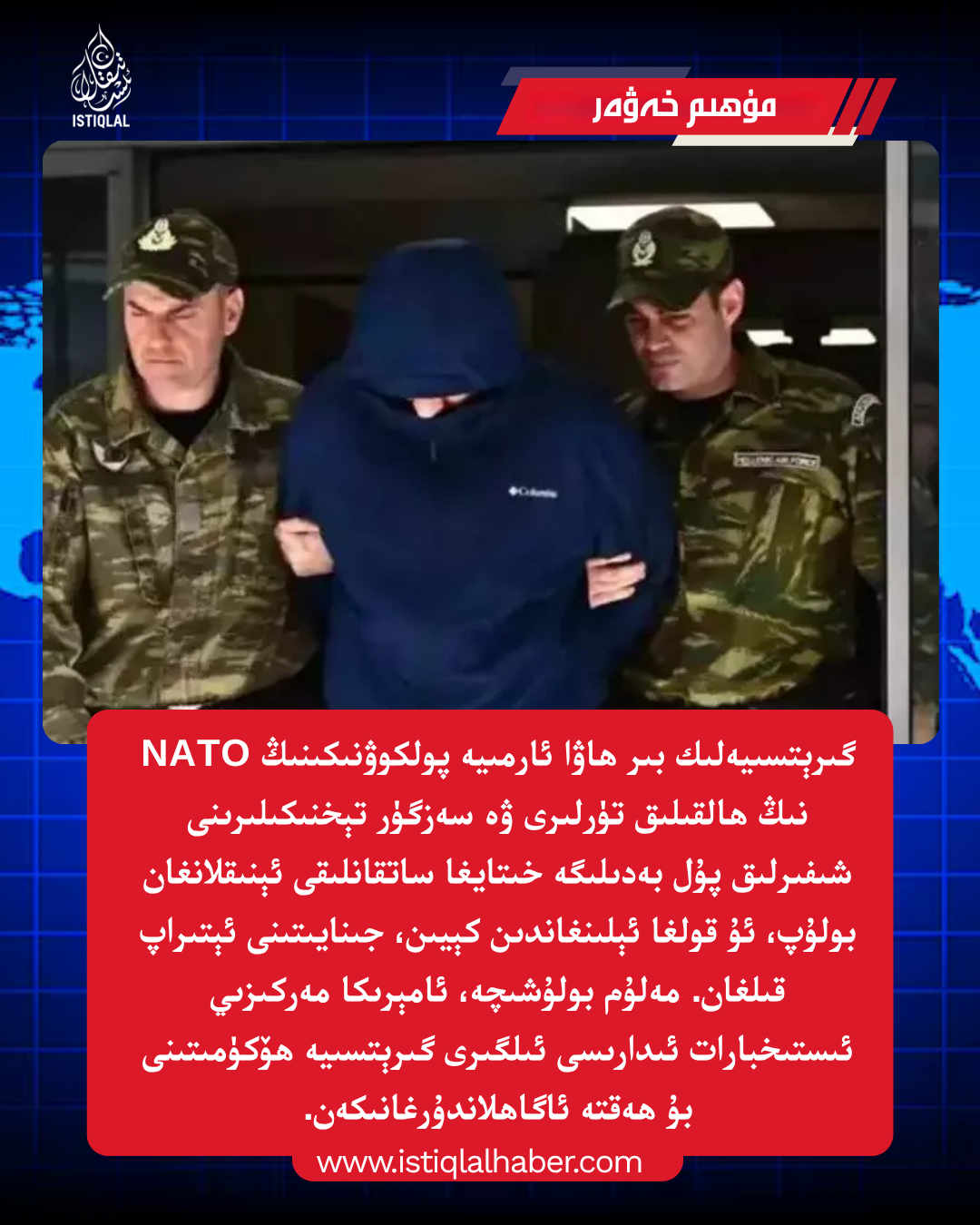 گىرېتسىيەلىك بىر ھاۋا ئارمىيە پولكوۋنىكىنىڭ NATO نىڭ ھالقىلىق تۈرلىرى ۋە سەزگۈر تېخنىكىلىرىنى شىفىرلىق پۇل بەدىلىگە خىتايغا ساتقانلىقى ئېنىقلانغان بولۇپ، ئۇ قولغا ئېلىنغاندىن كېيىن، جىنايىتىنى ئېتىراپ قىلغان. مەلۇم بولۇشىچە، ئامېرىكا مەركىزىي ئىستىخبارات ئىدارىسى ئىلگىرى گىرېتسىيە ھۆكۈمىتىنى بۇ ھەقتە ئاگاھلاندۇرغانىكەن.