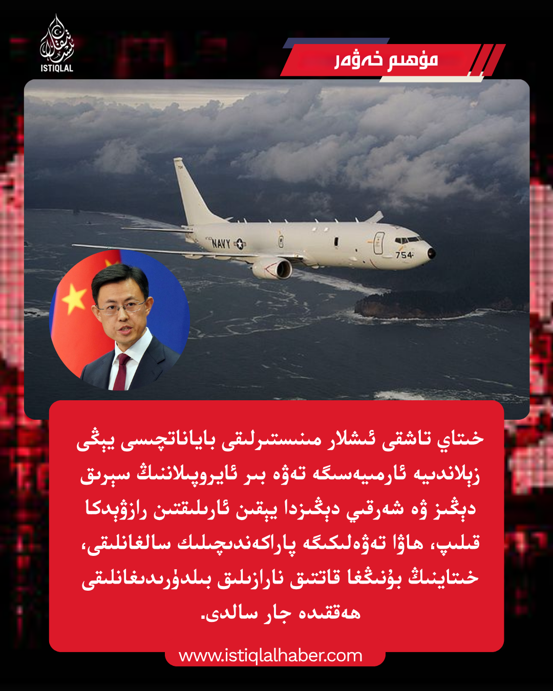 خىتاي تاشقى ئىشلار مىنىستىرلىقى باياناتچىسى يېڭى زېلاندىيە ئارمىيەسىگە تەۋە بىر ئايروپىلاننىڭ سېرىق دېڭىز ۋە شەرقىي دېڭىزدا يېقىن ئارىلىقتىن رازۋېدكا قىلىپ، ھاۋا تەۋەلىكىگە پاراكەندىچىلىك سالغانلىقى، خىتاينىڭ بۇنىڭغا قاتتىق نارازىلىق بىلدۈرىدىغانلىقى ھەققىدە جار سالدى.
