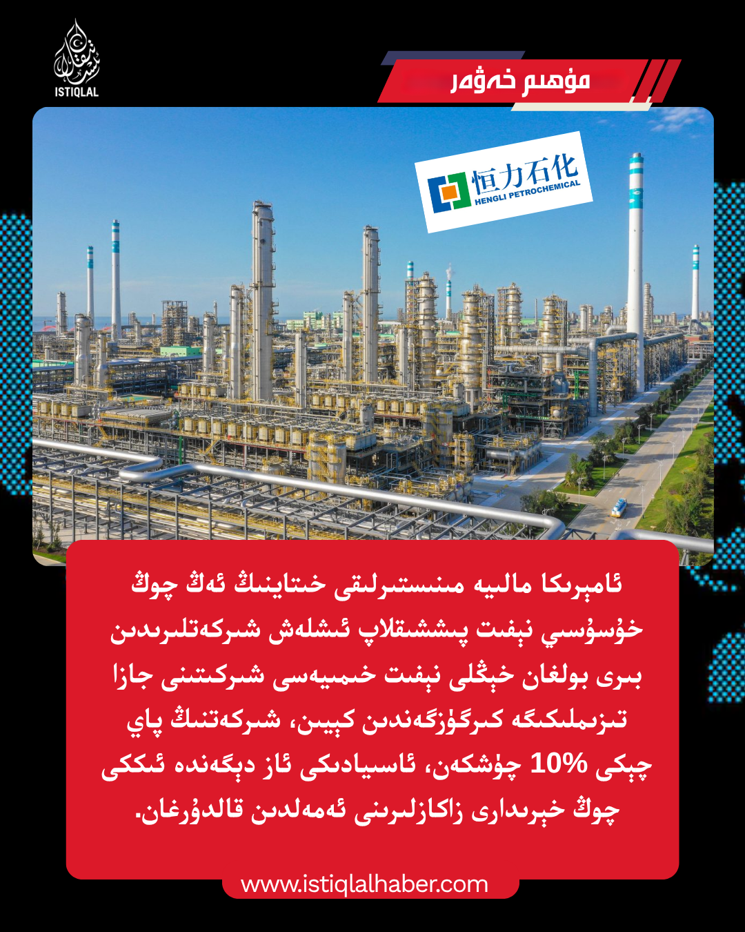 ئامېرىكا مالىيە مىنىستىرلىقى خىتاينىڭ ئەڭ چوڭ خۇسۇسىي نېفىت پىششىقلاپ ئىشلەش شىركەتلىرىدىن بىرى بولغان خېڭلى نېفىت خىمىيەسى شىركىتىنى جازا تىزىملىكىگە كىرگۈزگەندىن كېيىن، شىركەتنىڭ پاي چېكى %10 چۈشكەن، ئاسىيادىكى ئاز دېگەندە ئىككى چوڭ خېرىدارى زاكازلىرىنى ئەمەلدىن قالدۇرغان.